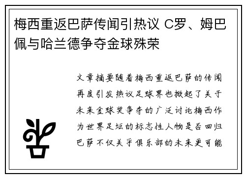 文章摘要:随着梅西重返巴萨的传闻再度引发...