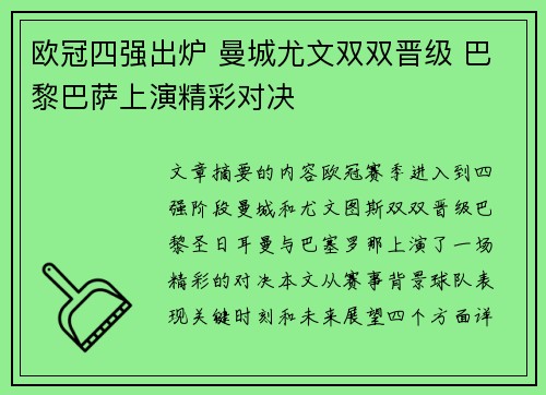 文章摘要的内容:欧冠赛季进入到四强阶段,...