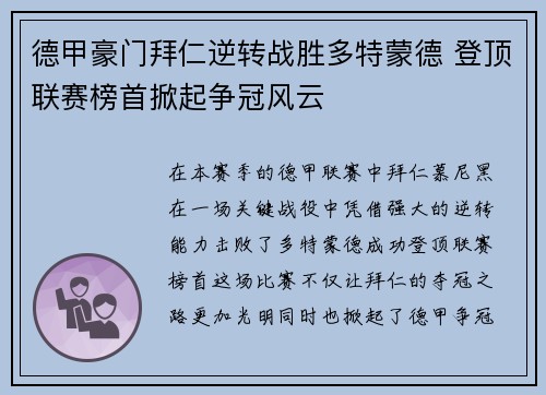 在本赛季的德甲联赛中,拜仁慕尼黑在一场关...