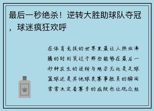 在体育竞技的世界里,最让人热血沸腾的时刻...
