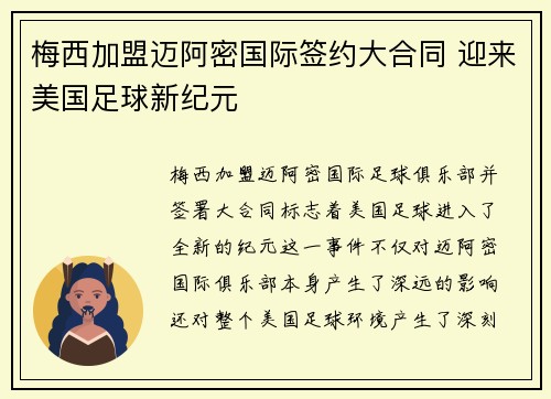 梅西加盟迈阿密国际足球俱乐部并签署大合同...