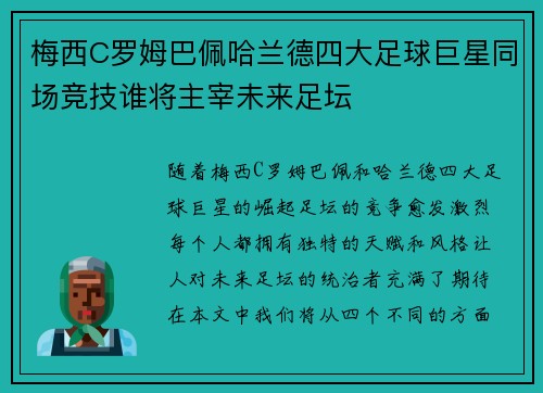 随着梅西、C罗、姆巴佩和哈兰德四大足球巨...