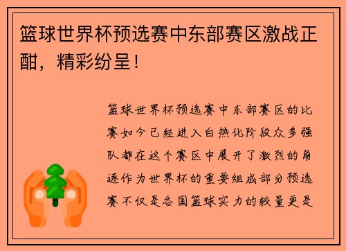篮球世界杯预选赛中东部赛区的比赛如今已经...