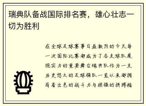 在竞技体育的舞台上,每一场比赛都是一场充...