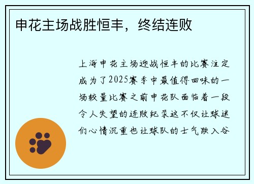 上海申花主场迎战恒丰的比赛,注定成为了2...